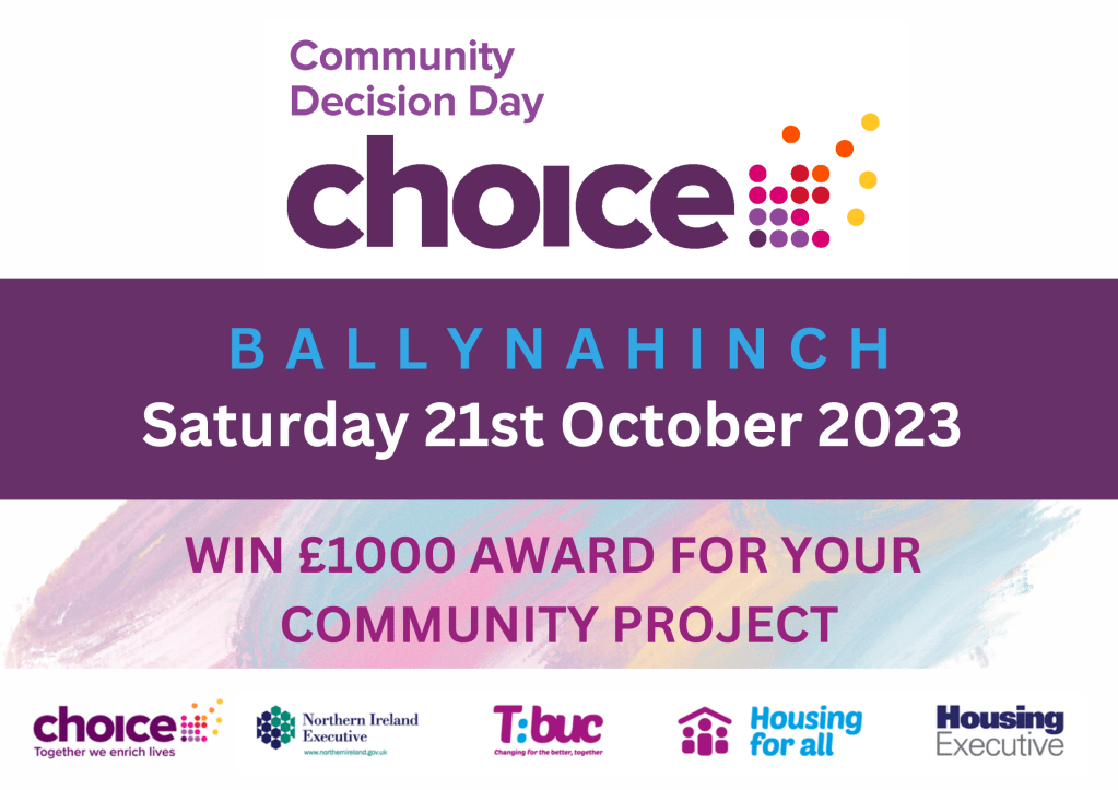 • At the CHOICE Community Decision Day you will inform the voters what you plan to do and what you hope to achieve as they visit your stand. All you need to do is tell them some information about what you do. what the project is about and how this will be good for the Ballynahinch area. You can do this by using pictures, posters and/or display boards etc.